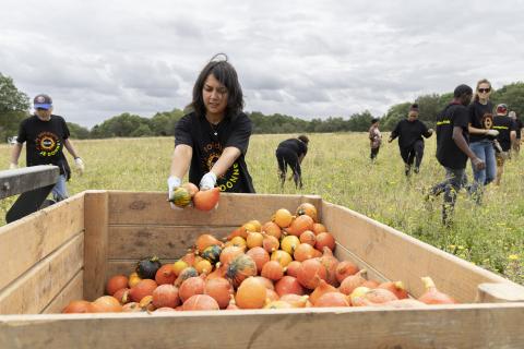 - Fin septembre / début octobre : une soixantaine de glaneurs pour récolter les courges et les offrir aux associations d’aide alimentaire.