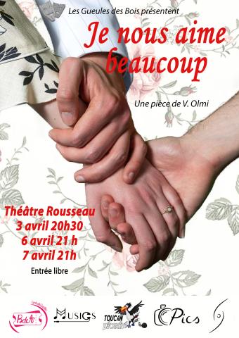 Les Geules des Bois, la troupe de théâtre de CentraleSupélec, vous invitent à leur nouvelle pièce, la comédie Je nous aime beaucoup de Véronique Olmi.