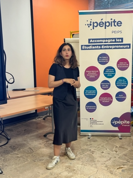 Quels sont les atouts du D.U ? Je dirais d’abord la pluridisciplinarité des enseignements et la diversité des intervenants. Le D.U aborde le digital, le codage, le droit, la propriété intellectuelle, les RH, le marketing ou encore la communication. C’est l’occasion de rencontrer des experts du commercial au représentant de la CCI. On a des visites et des exercices pratiques comme par exemple une semaine de codage réalisée au 42. Au sein de la promotion, il y a une diversité des profils, les étudiants ont des cursus et des projets très différents de la cancérologie à l’école d’ingénieur avec des personnes qui viennent au-delà du périmètre de l’Université Paris-Saclay. On apprend beaucoup des autres et j’ai eu des échanges qui ont été sources de réflexion et d’inspiration On peut intégrer le D.U avec un vrai projet, la formation permet un vrai coup de pouce. De mon côté, ce n’était pas mon cas, j’ai donc travaillé sur des projets fictifs, mais cela m’a été très utile.