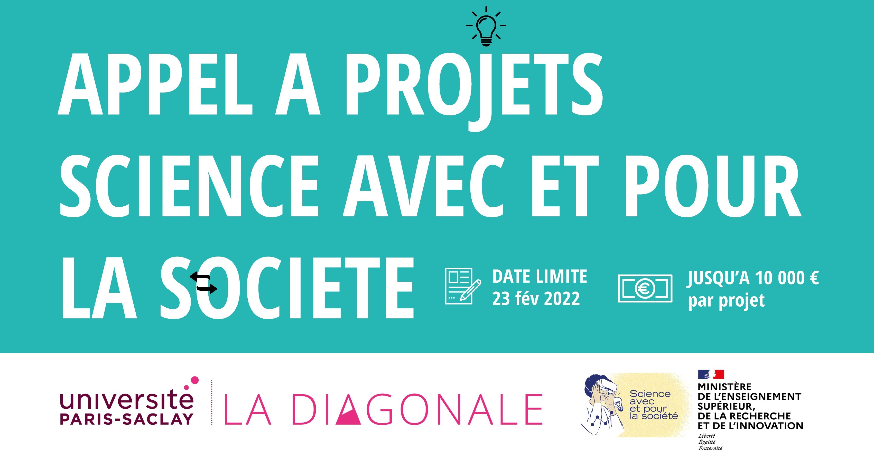 Dans ce cadre, la Diagonale · Université Paris-Saclay lance un appel à projets « science avec et pour la société - SAPS 2022 » destiné à soutenir des projets favorisant les échanges entre la communauté scientifique et la société dans une optique de partage des connaissances et de diffusion de la culture scientifique, technique et industrielle et/ou d'implication citoyenne.