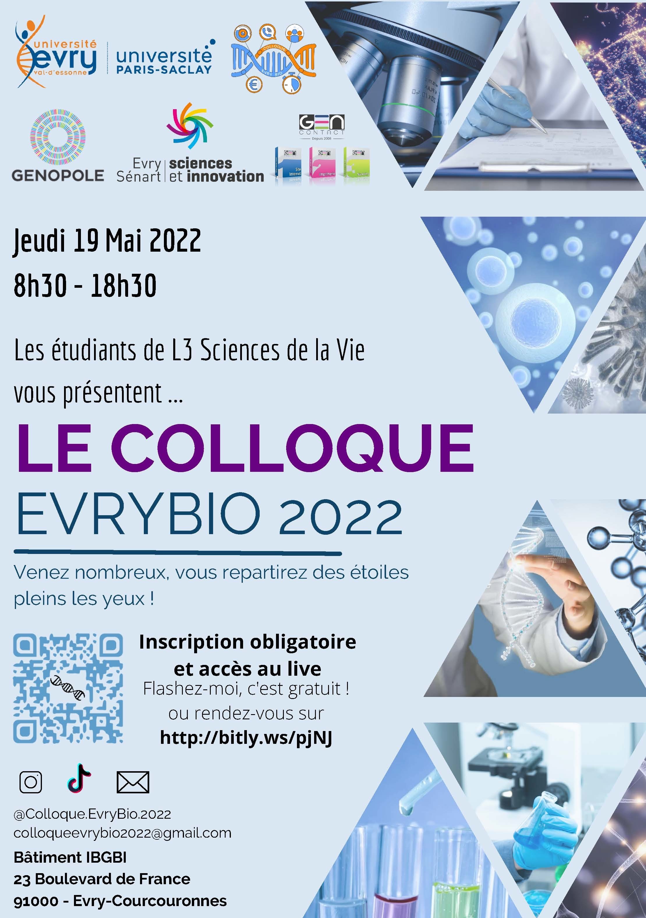 23 Boulevard de France, 91000C'est la 11ème édition du Colloque EvryBio des étudiants en 3è année de Sciences de la Vie de l'Université d'Évry. Ce colloque est un événement en partenariat avec Genopole et l'association Évry-Sénart Sciences et Innovation.