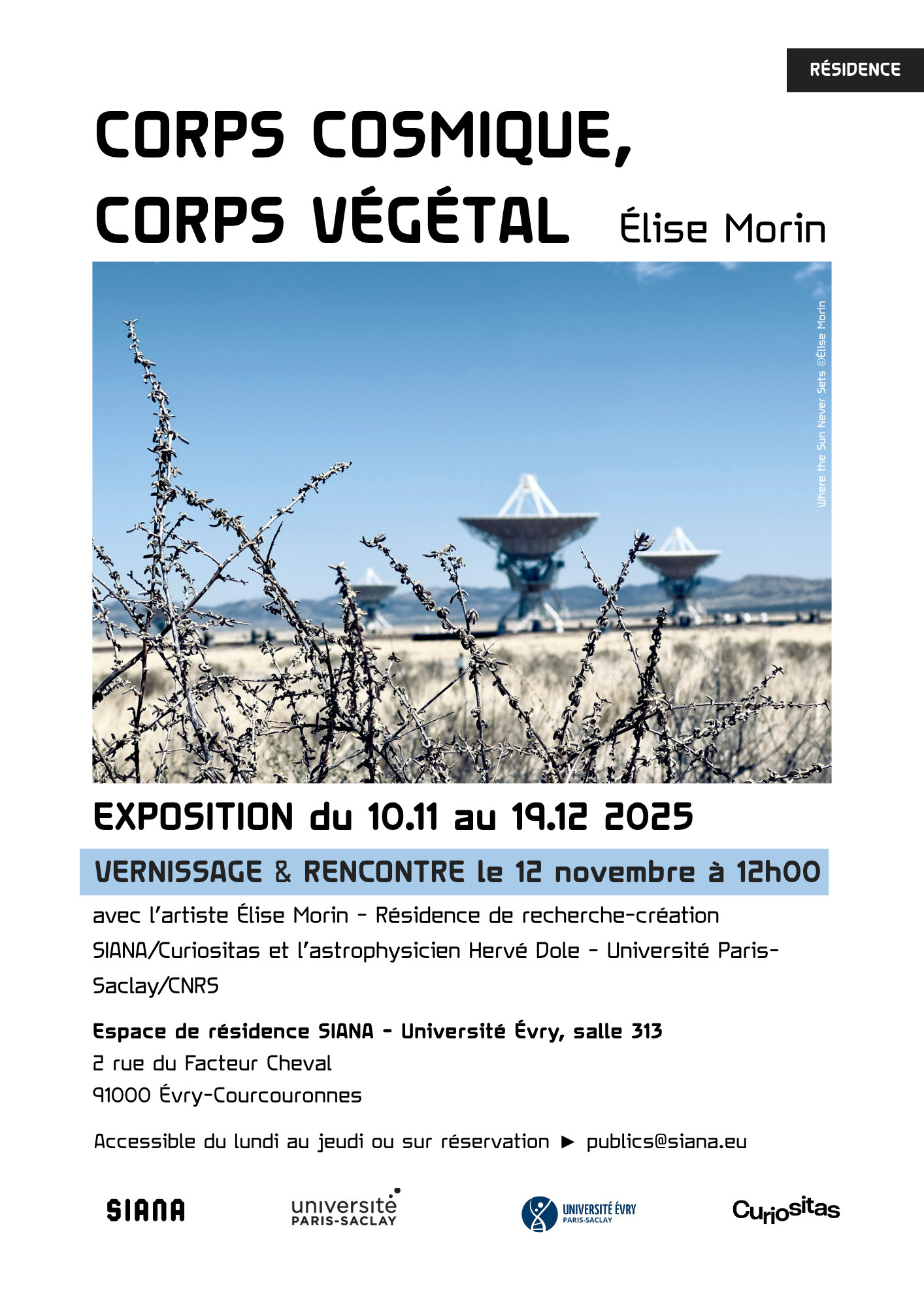 Suite à l’invitation de SIANA à la Biennale En Commun(s), Élise Morin poursuit sa recherche avec Corps cosmique, corps végétal. En explorant les effets des radiations cosmiques sur le corps des astronautes, en reliant science et critique de la conquête spatiale, l’artiste imagine un corps irradié qui devient autre, inspiré du végétal, inventant des formes d’adaptation et de résistance.