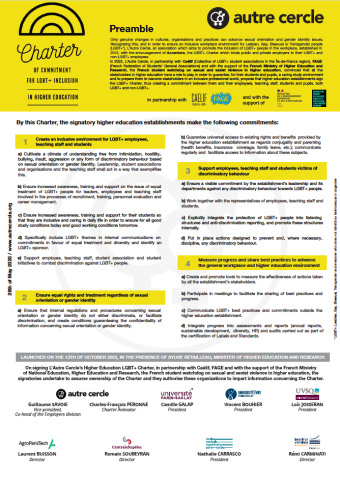 This plan is intended to prevent and address situations of discrimination, while fostering an inclusive study and work environment. Actions are undertaken for staff, students and associations to strengthen awareness of LGBT+ issues and the fight against LGBT+ discrimination.