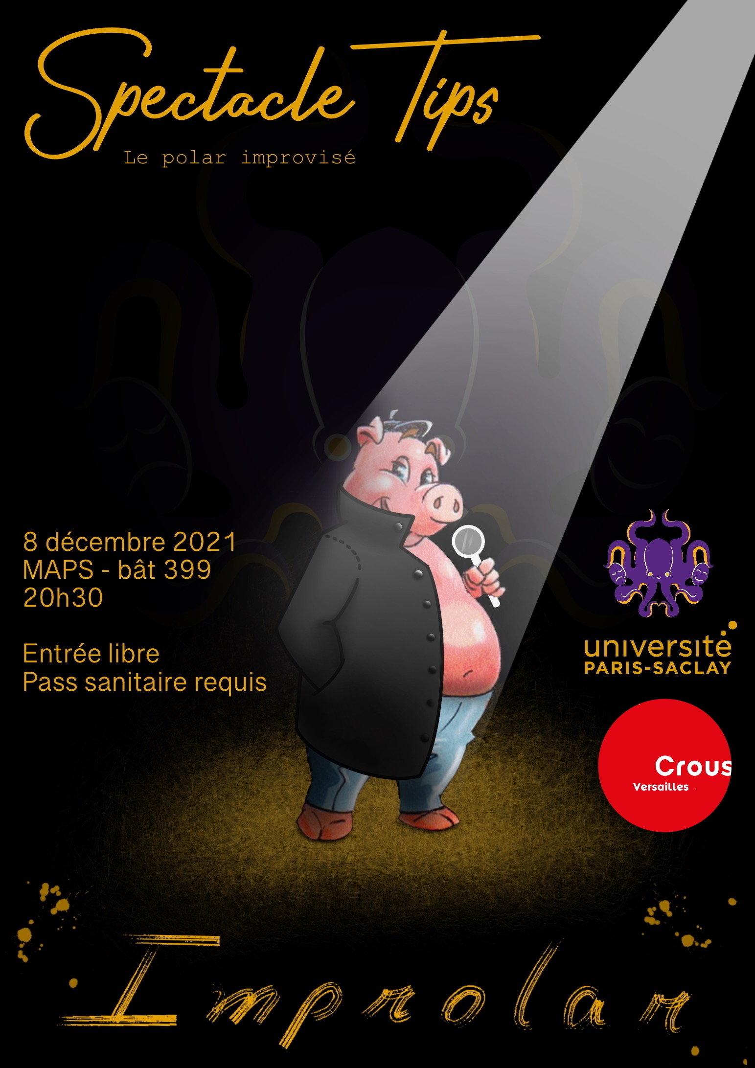 l'Improlar, est l'art de vous faire frissonner avec un polar improvisé devant vos yeux ébahis en direct. Venez vibrer dans la salle polyvalente de la MaPS où un terrible crime a été commis, les enquêteurs de la TIPS sont sur le coup mais ils auront besoin de votre précieuse aide pour débusquer le véritable coupable