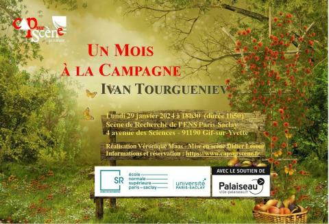 2024-01-29 20:30 2024-01-29 22:30 Cap sur Scène donne une représentation d'Un Mois à la campagne de Tourgueniev sur la Scène de Recherche de l'ENS Paris-Saclay