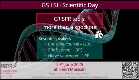 La Graduate School Life Sciences and Health (GS LSH) organise sa 10ème journée scientifique intitulée "CRISPR tools - more than a knockout" le mardi 24 juin 2025 dans l'amphithéâtre Olivier Kahn à Henri Moissan, 17 avenue des Sciences, 91400 Orsay.