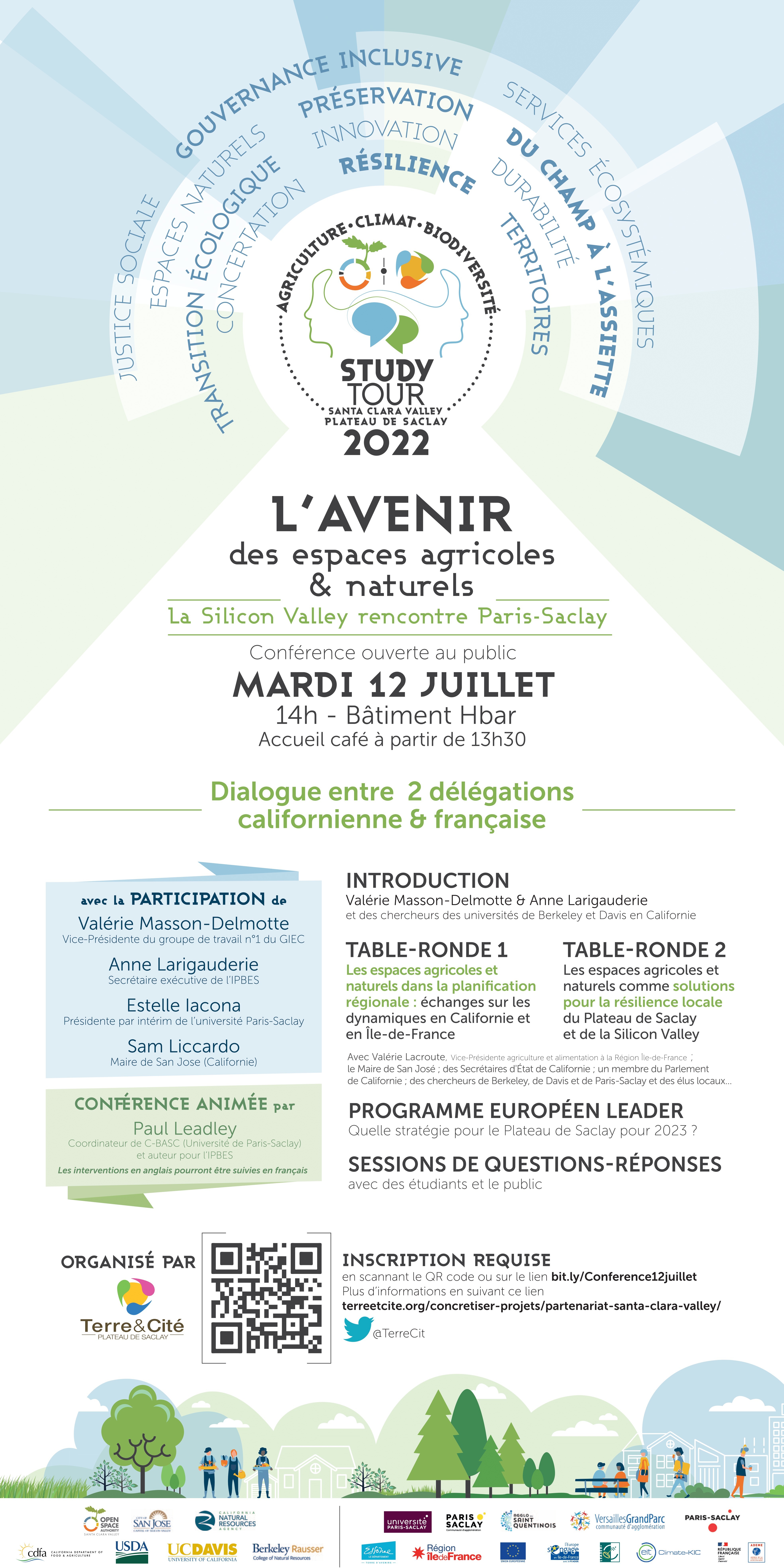Le 12 juillet prochain, la Silicon Valley rencontre Paris-Saclay: assistez à notre conférence sur l'avenir des espaces naturels et agricoles avec, pour la première fois réunies en France, nos délégations californiennes et françaises composées de décideurs politiques locaux et étatiques, de membres d'organisations régionales, d'associations et de scientifiques français et californiens.