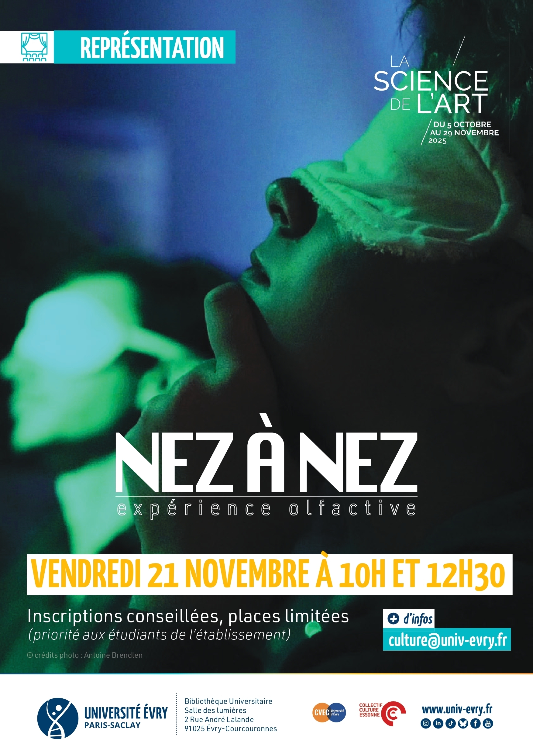 Deux représentations exceptionnelles seront proposées à la Salle des Lumières de la Bibliothèque Universitaire, offrant aux étudiants une exploration intime et poétique de l’odorat.