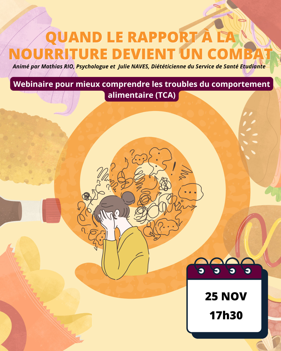 Mathias Rio, psychologue et Julie Naves, diététicienne, s’exprimeront sur le sujet le mardi 25 novembre 2025, de 17h30 à 19h00__, sur Teams