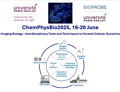 The Second Interdisciplinary Summer School, ChemPhysBio2025, titled Imaging Biology: Interdisciplinary Tools and Techniques to Unravel Cellular Dynamics, will take place from June 16–20, 2025, at Université Paris-Saclay. Organized by the Institute for the Sciences of Light and the BioProbe program, this event offers a unique platform for early-career researchers to explore the convergence of chemistry, physics, and biology applied to understand molecular mechanisms in their native biological context.