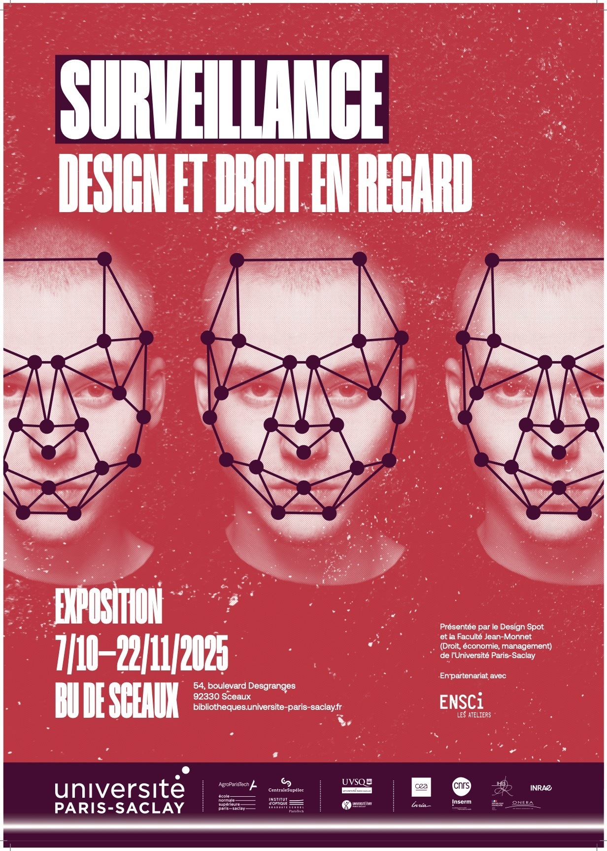 Bibliothèque universitaire de Sceaux, Faculté Jean Monnet de l'Université Paris-SaclayÀ l’ère du numérique, la surveillance redéfinit les frontières de nos libertés individuelles et collectives. Où s’arrête la protection et l’optimisation de l’expérience utilisateur ? Où commence le contrôle ? Quelles sont les limites des dispositifs qui façonnent nos interactions quotidiennes ? Cette exposition, fruit d’une collaboration entre la Faculté Jean Monnet Droit-Économie-Management de l’Université Paris-Saclay et l’École nationale supérieure de création industrielle (ENSCi-Les Ateliers), explore les tensions entre protection et contrôle, sécurité et liberté, à travers le prisme du droit et du design.