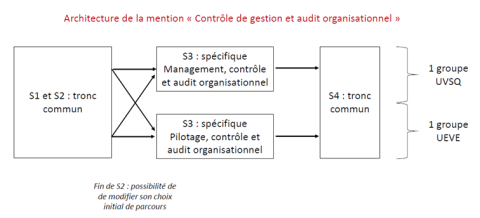 Deux tonalités sont proposées : le pilotage et le management, le premier dispensé à l'Université d'Evry Val d'Essonne (CGAO-PCAO) et le second dispensé à l'Université de Versailles Saint-Quentin (CGAO-MCAO). Les deux parcours donnent lieu à la diplomation Université Paris-Saclay.