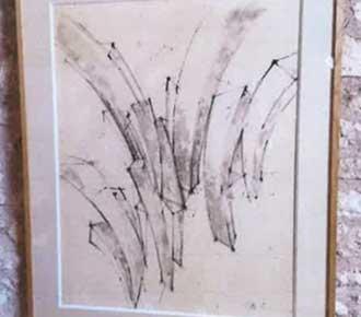 Les traits non horizontaux évoquent des notes de musique sur une portée. SEUPHOR est adepte du dessin-peinture avec des silhouettes blanches comme en clair-obscur. Il constitue un fond de traits parallèles dont les modulations plus ou moins sombres sont obtenues par des épaisseurs différentes du trait serré entre des écartements croissants et décroissants.